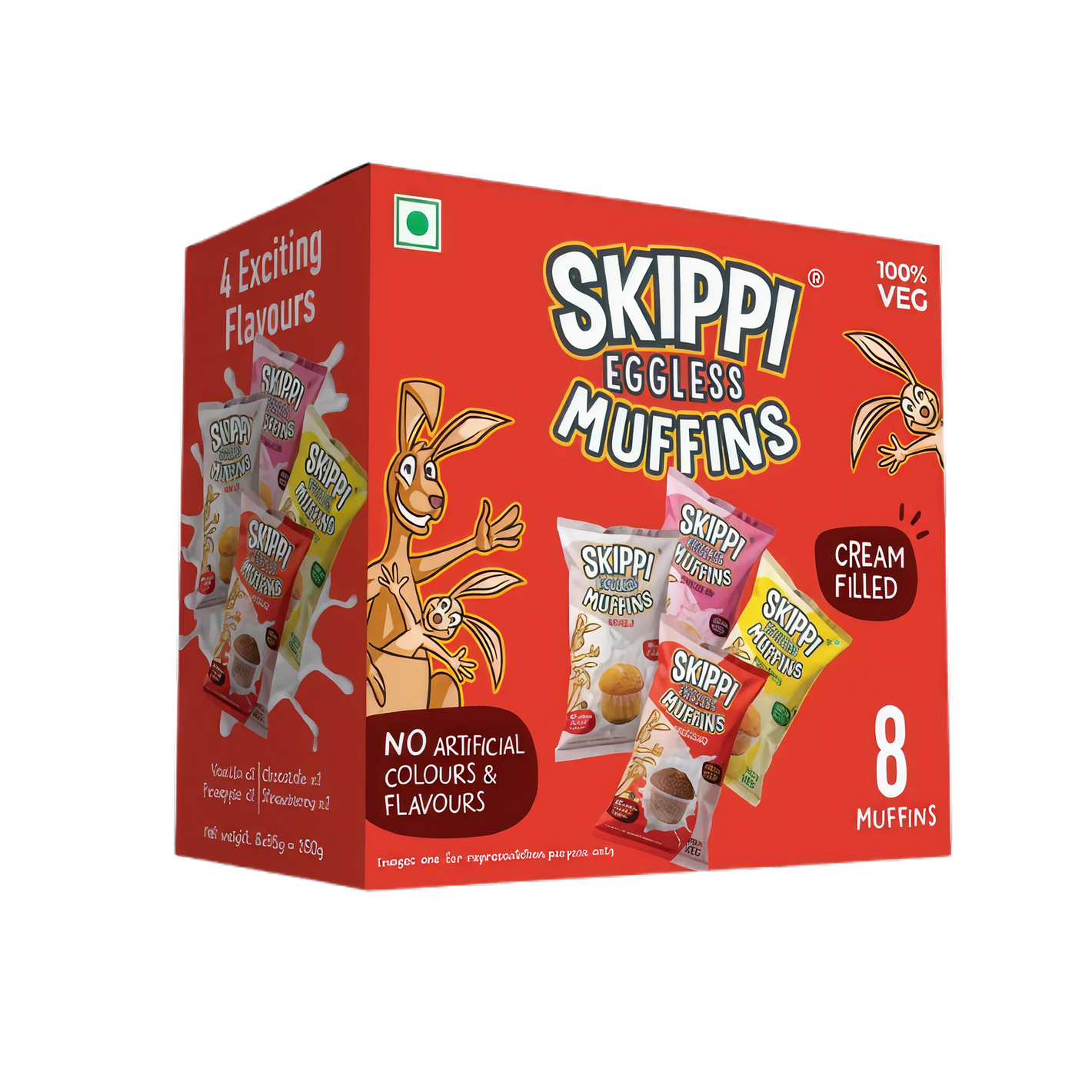 Skippi Eggless Muffins, 4 Assorted Flavors, Pack of 8 muffins 280 gm.